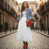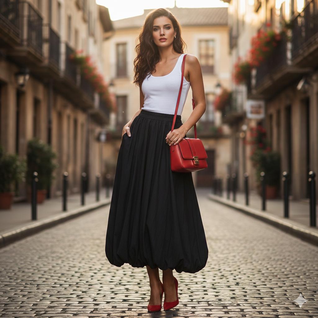 חצאית נשים סגנון A-Line אופנתי, ארוך ונינוחה עם מותן אלסטי גבוה, קיפול קל ונפח שמעניק נוחות ושיק יומיומי. גזרה רגילה מתאימה לכל סוגי הגוף, בד קליל ונעים . מושלמת לאירועי יום, יציאות או לסטייל יומיומי.