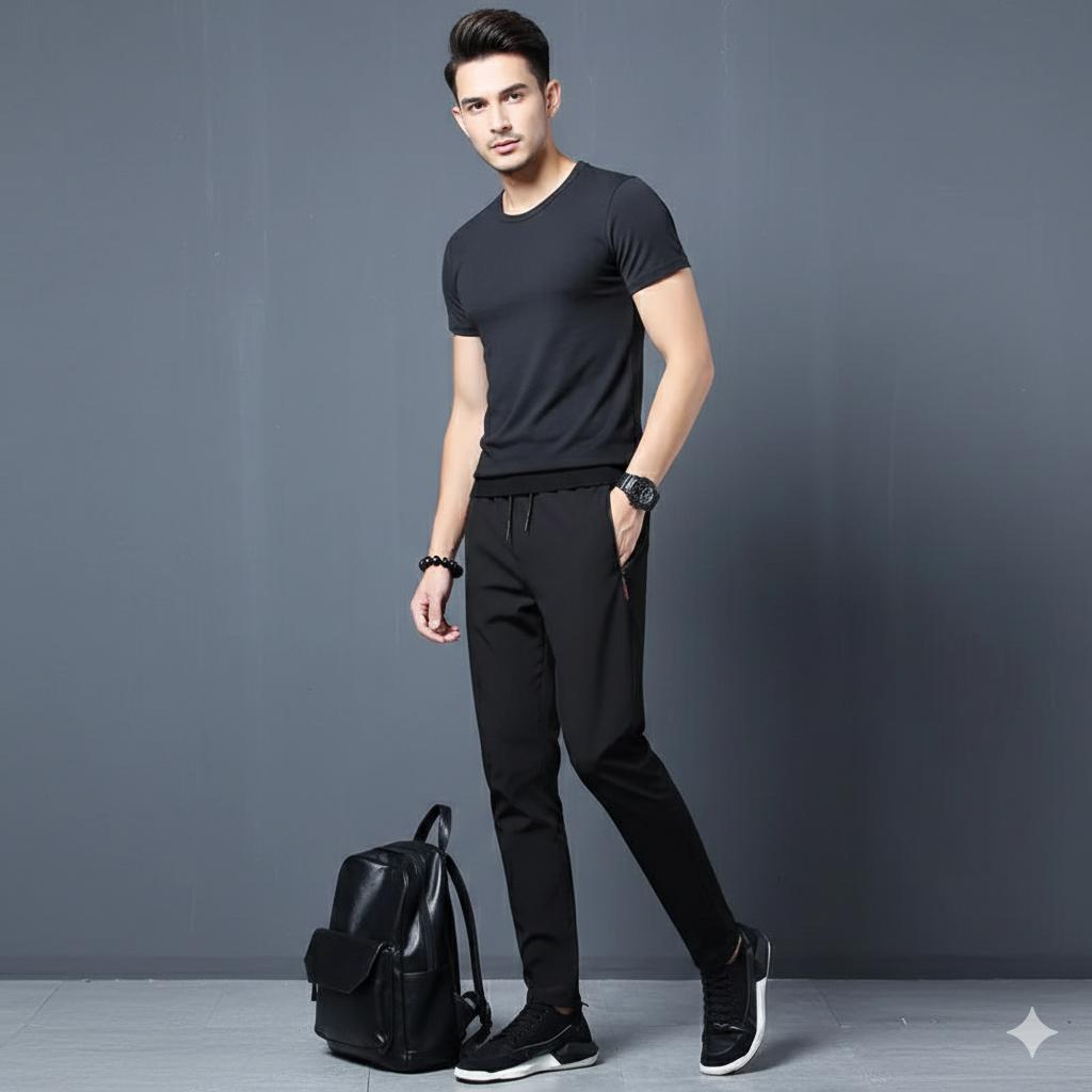 מכנסיים לגברים בסגנון ספורטיבי ואלגנטי, עם מותן אלסטי לגמישות ונוחות מרבית. גזרה ישרה מותניים בינוניים, בד קל משקל ונעים ללבישה יומיומית..