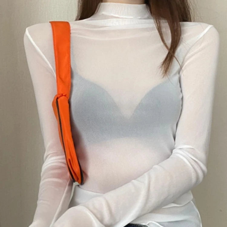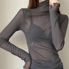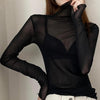 חולצת נשים עם שרוולים ארוכים, מבד תחרה שקוף ונעים למגע, שמתאימה למראה סקסי ומועדוני או ליום על החוף. גזרה צמודה שמחמיאה למבנה הגוף, צווארון גולף, בד עם מתיחה בינונית שמעניק נוחות וגמישות.